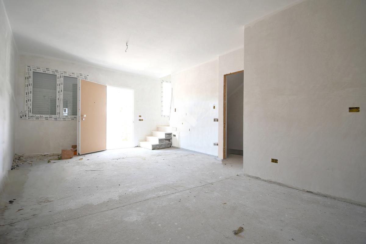Al piano terra troviamo una zona giorno open space con angolo cottura, disimpegno e primo bagno.