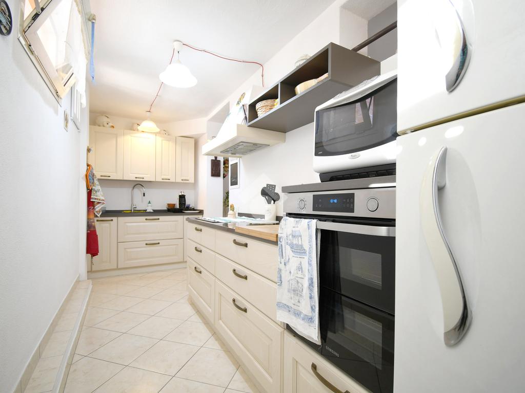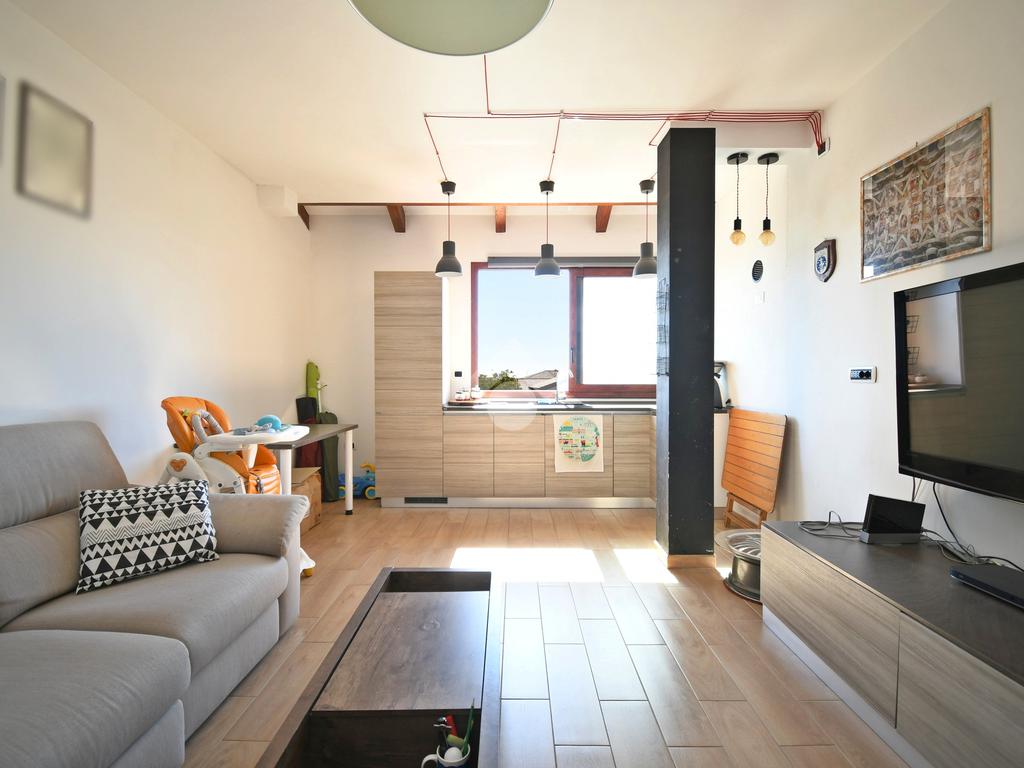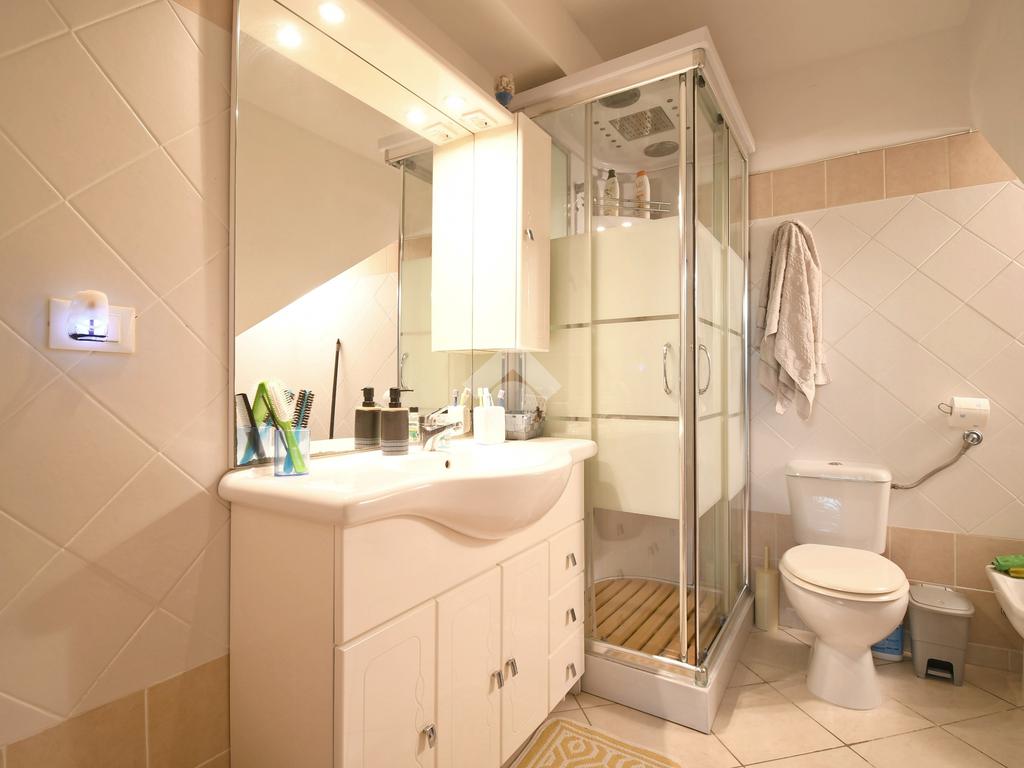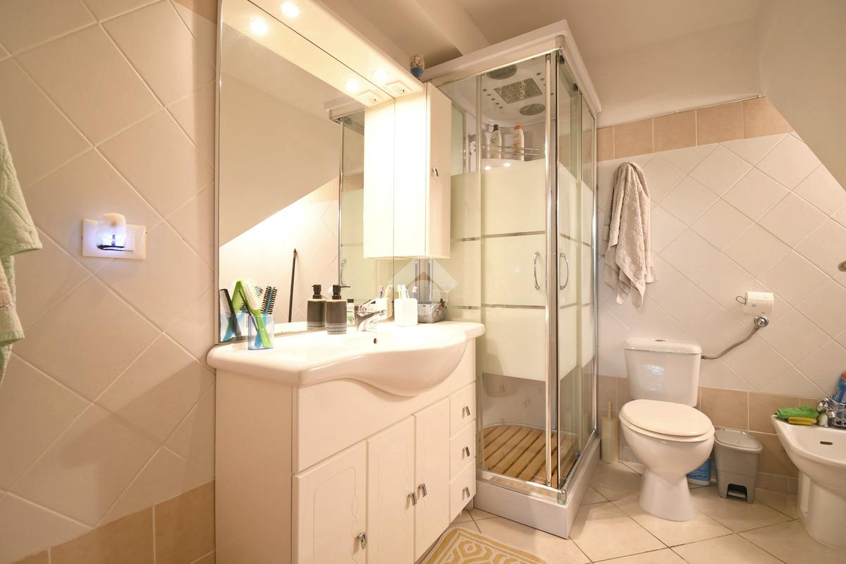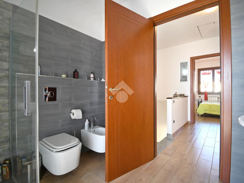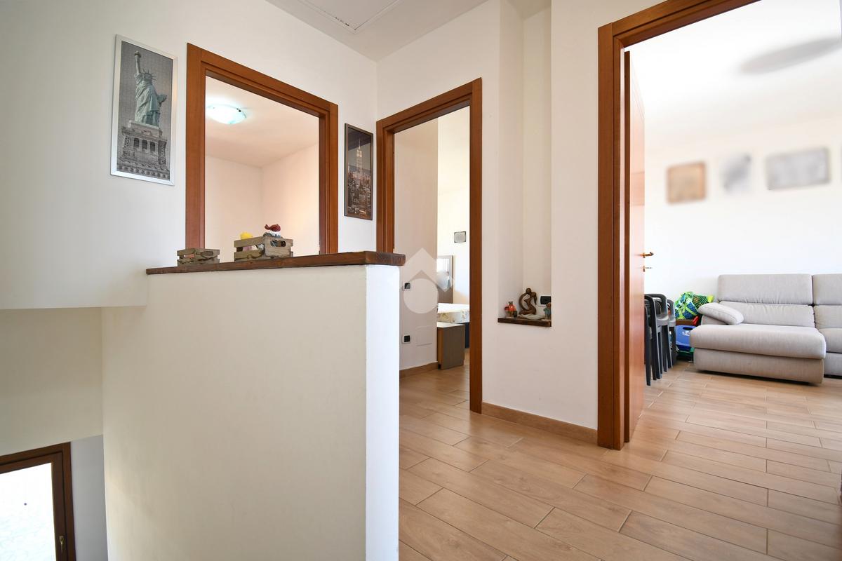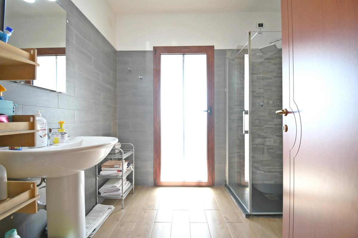 Una delle peculiarità dell'immobile è la sua predisposizione ad un frazionamento in due unità abitative: il primo piano infatti si presenta come un appartamento completo tipologia trivano, con due camere da letto matrimoniali, bagno finestrato con doccia e zona giorno open space con angolo cottura.