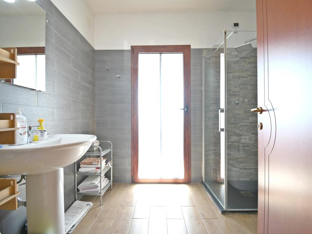 Al piano terra veniamo accolti da un ulteriore ingresso, al quale si collegano tutti gli altri ambienti della casa: una camera matrimoniale, una camera singola con balcone e uno spazioso bagno con doccia.