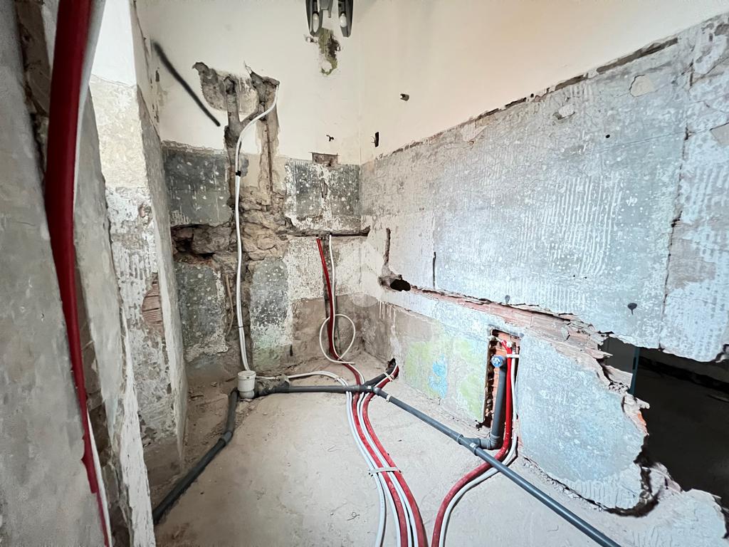 Sono già stati realizzati il nuovo impianto idraulico del bagno e della cucina, oltre al rifacimento completo dell’impianto elettrico, con cavi nuovi, anch’esso da completare nelle finiture finali.