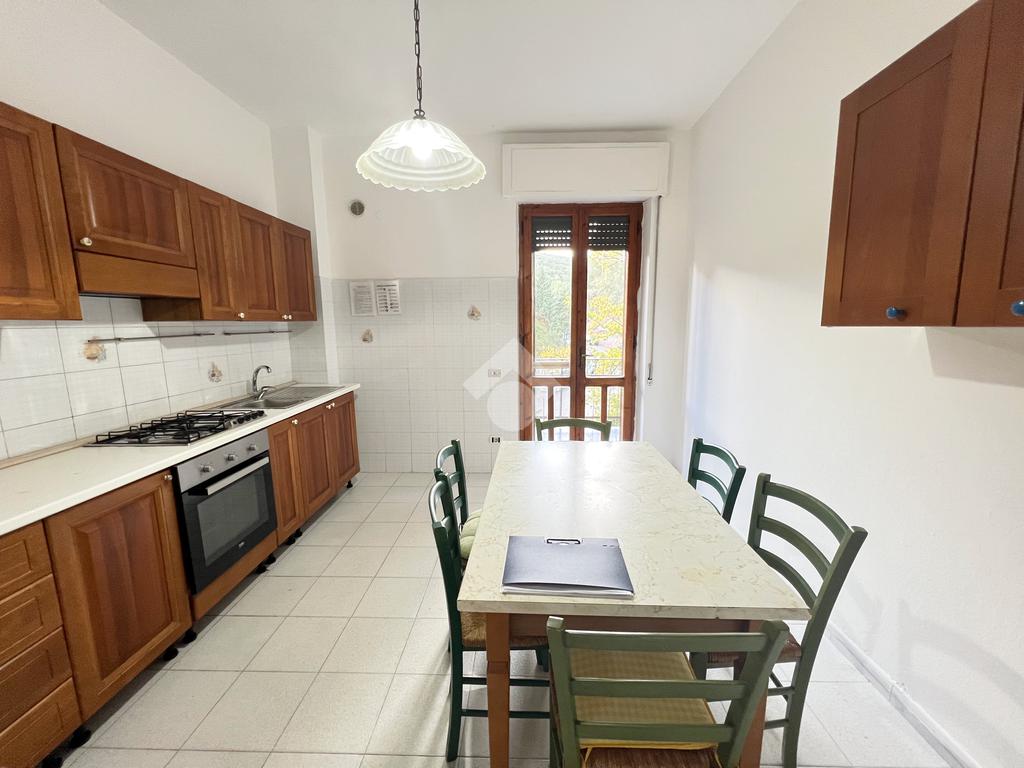 Proponiamo in vendita un appartamento al primo piano, completo di posto auto esclusivo all'interno del cortile condominiale, da cui si può godere di una piacevole vista panoramica sul verde della montagna che fa da sfondo alla palazzina.