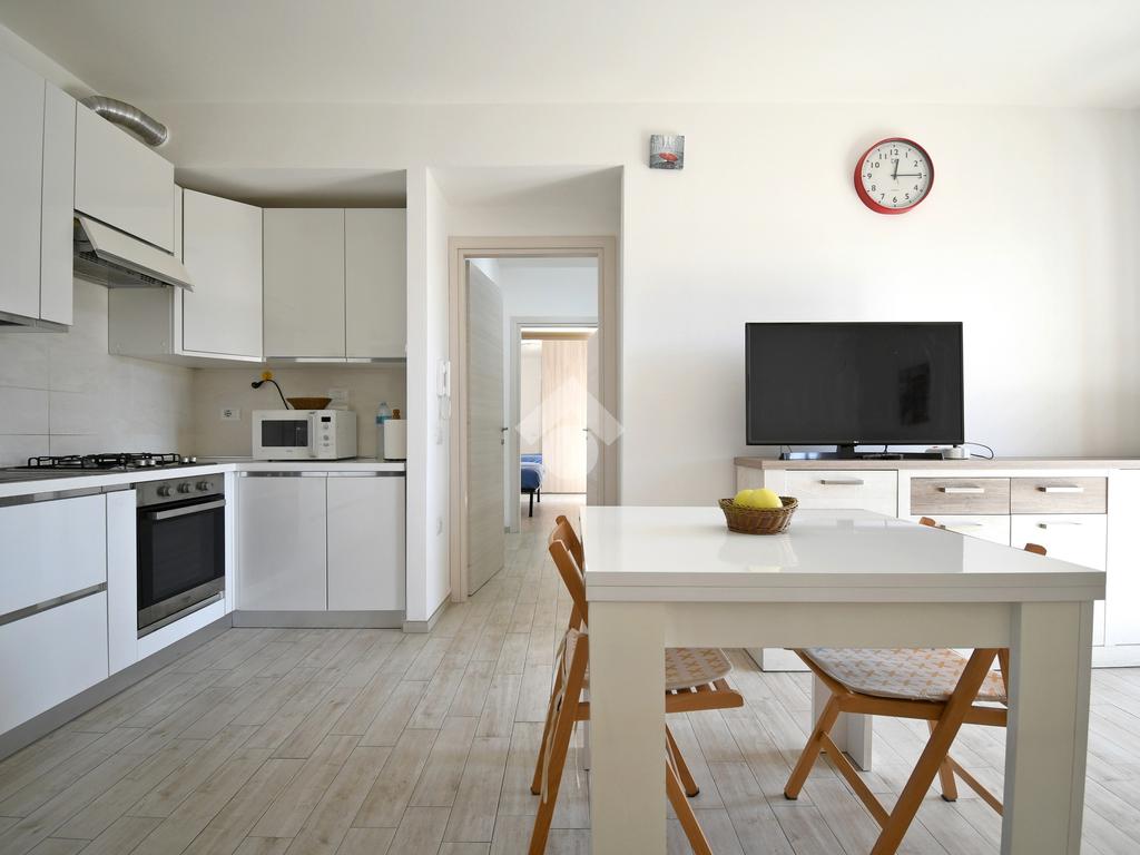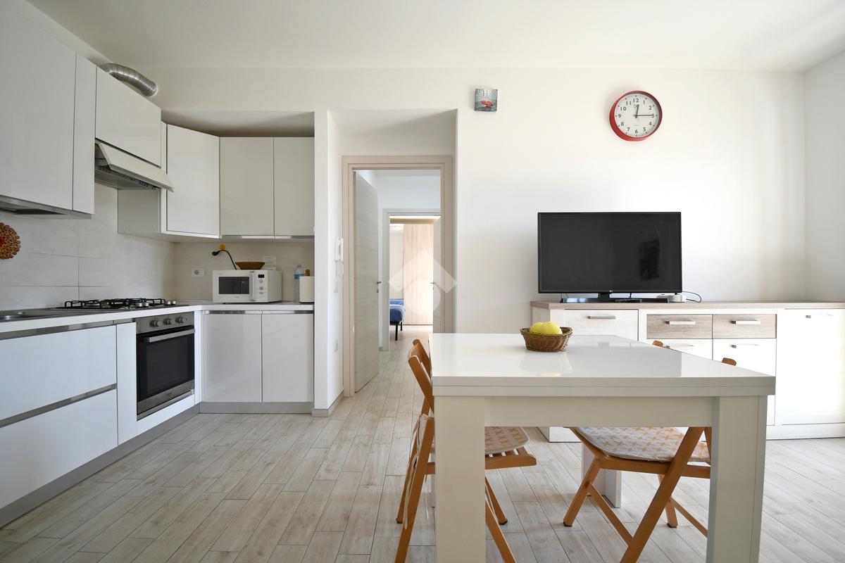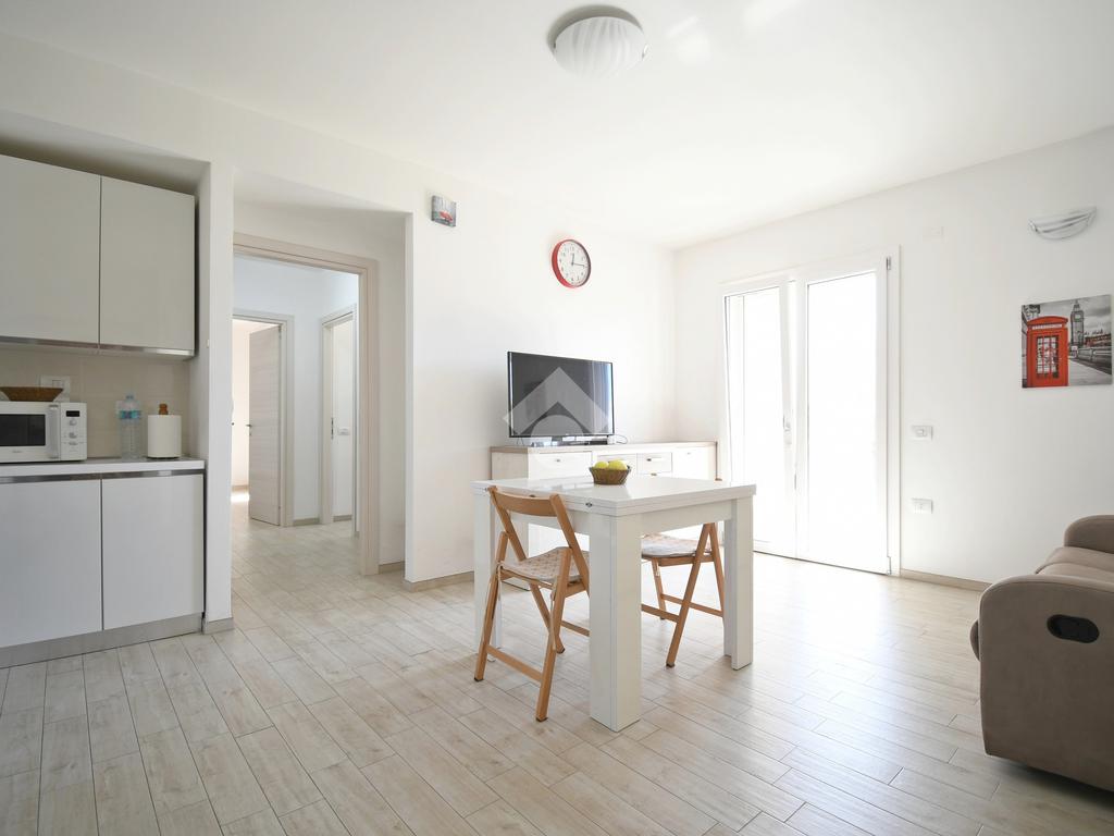 L'immobile ci accoglie su una luminosa zona giorno con angolo cottura e accesso diretto su un pratico ed ampio balcone.