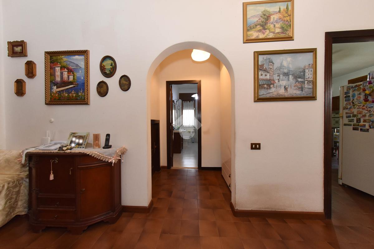 All'ingresso ci accoglie un disimpegno che conduce a tutti gli ambienti della casa e alla terrazza coperta sul retro.